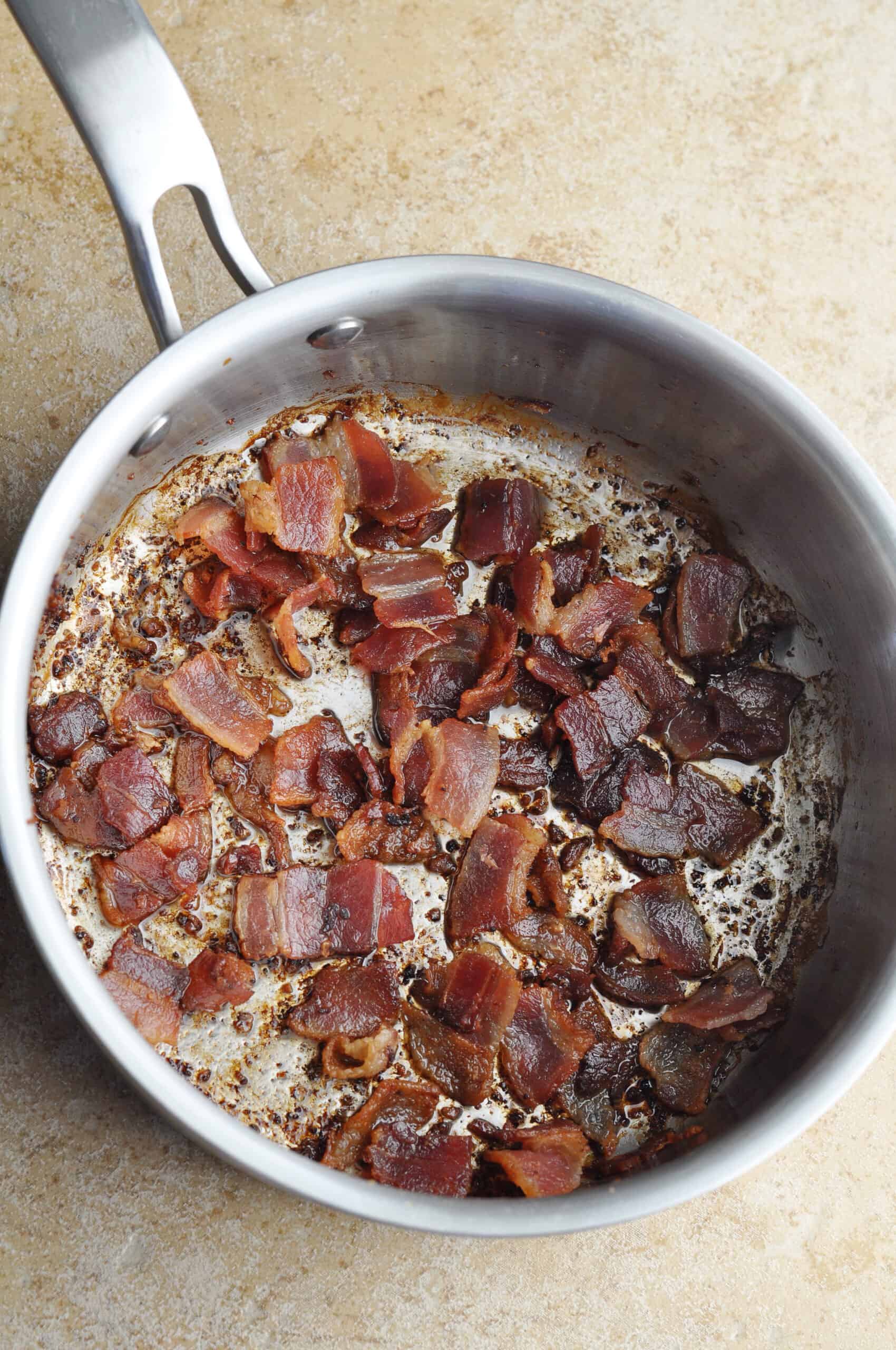 - Bacon - I like to use fairly lean bacon, so that there's some substantial meat left after cooking down the fat. The fat is good also, as it adds lots of flavor.