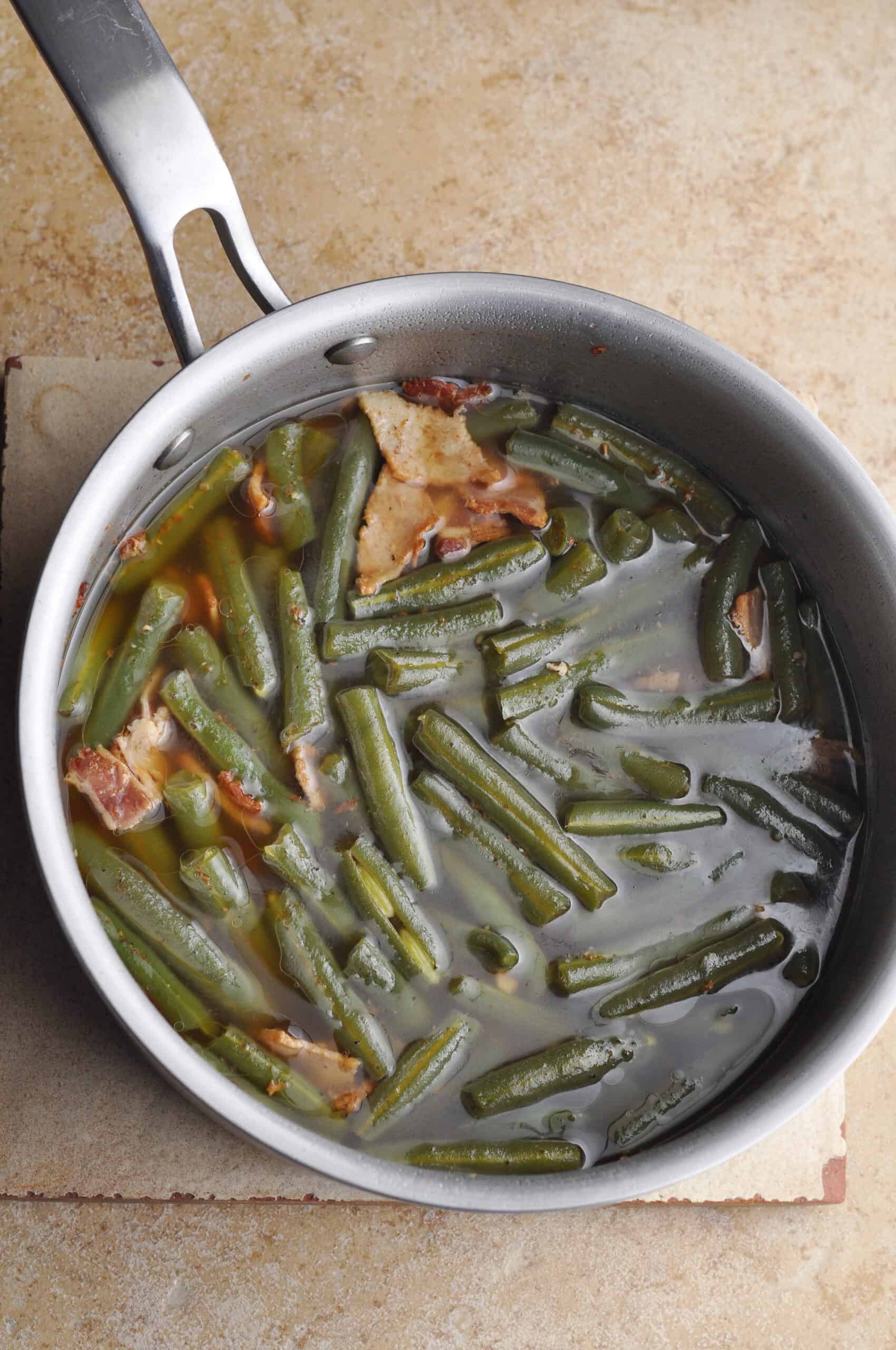 - Canned green beans: If you don't have access to fresh beans, you can substitute for canned. Just make sure to drain the canned beans before adding to the pan. The cook time will be much shorter if using canned - about 15-20 minutes simmered.