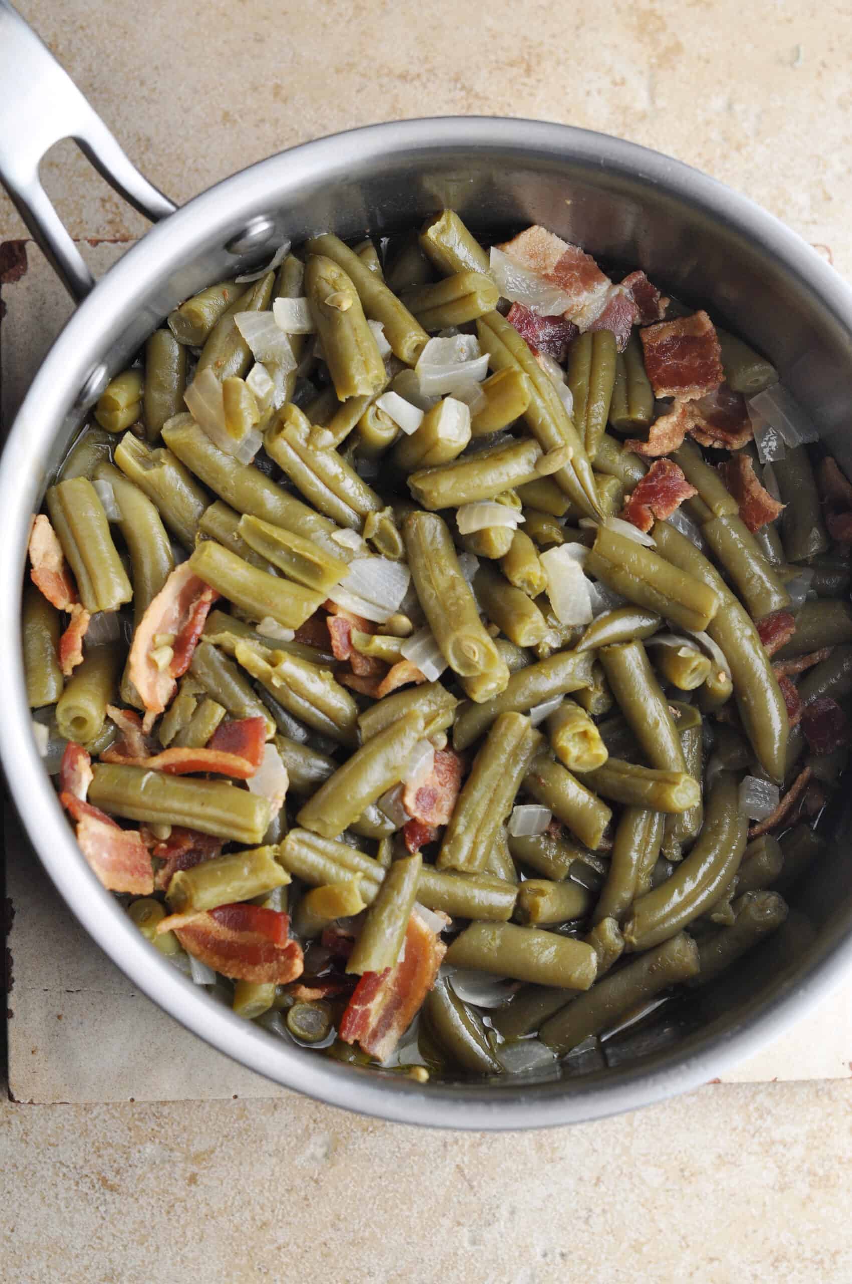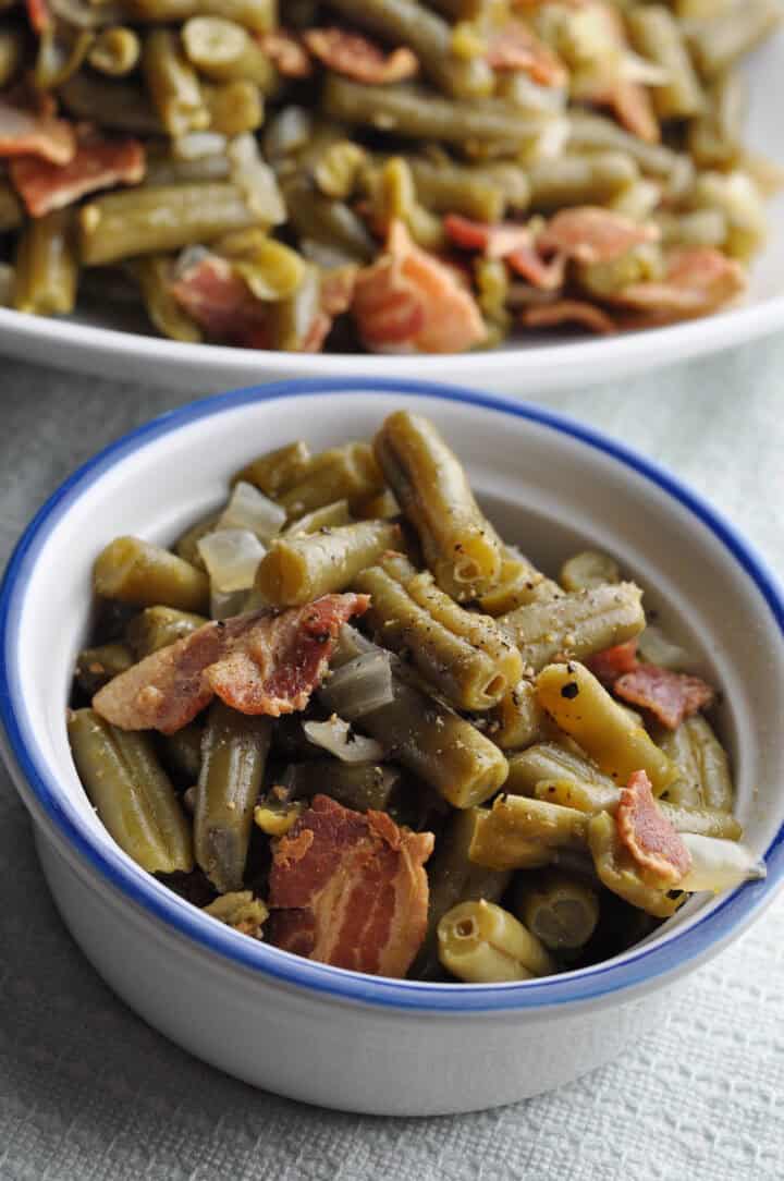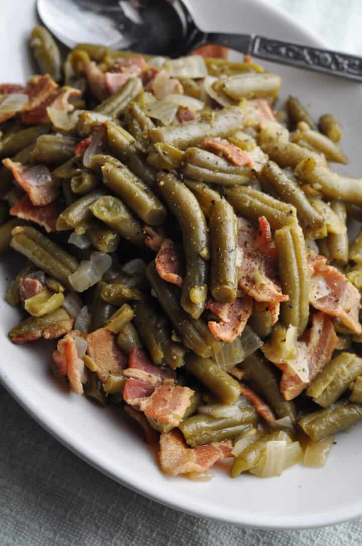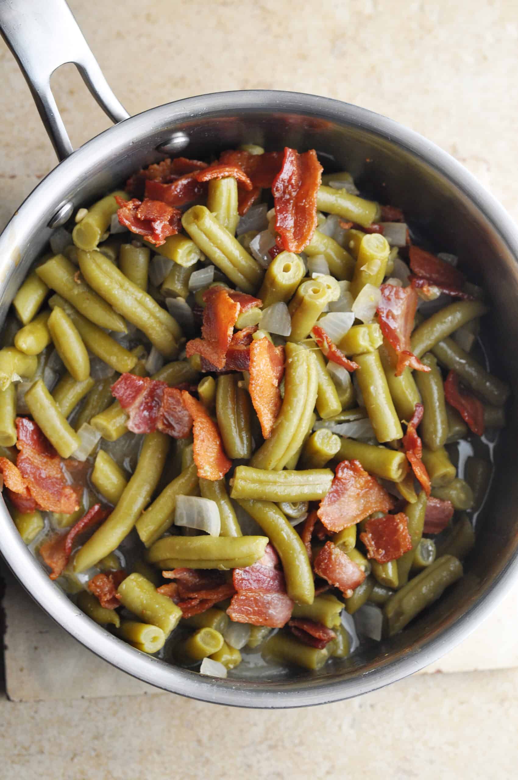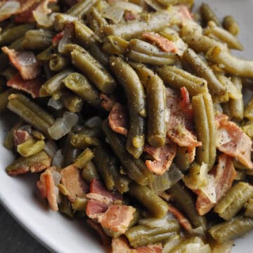 This recipe uses canned green beans. If you prefer a green bean recipe that uses fresh or frozen green beans, you may love my Southern Green Beans or Crockpot Green Bean Casserole.